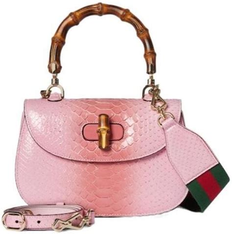 Gucci Women's Bamboo 1947 Python Small Bag - Pink - Top Handle Bags