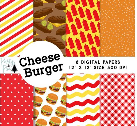 Cheeseburger Digital Papers 12X12 Scrapbooking Food Instant Download Hamburger Paper Backgrounds