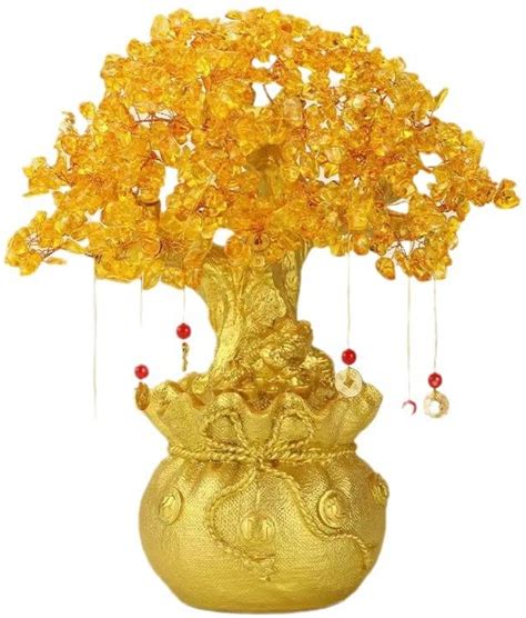 Bwinka Feng Shui Citrine Multicolor Crytal Money Tree Bonsai With Chinese Decoration For Luck And Wealth