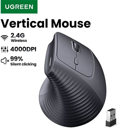 UGREEN Vertical Wireless Mouse 2.4G Ergonomic 4000DPI 6 Mute Buttons For Macbook Tablet Laptops