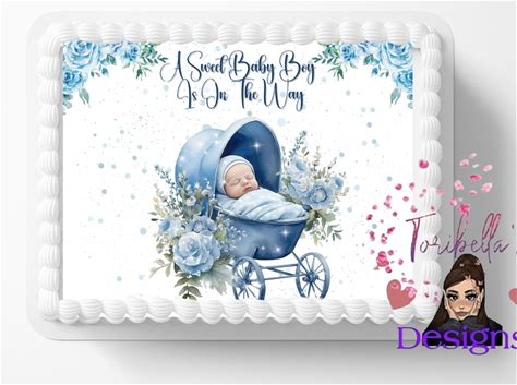 Sweet Baby Boy Edible Image Blue Baby Carriage Baby Shower Party Edible Cake Topper Frosting Sheet Edible Easy To Apply Cake Sticker