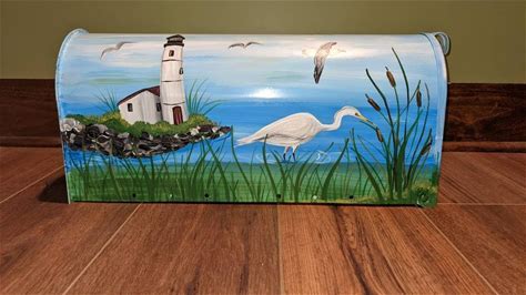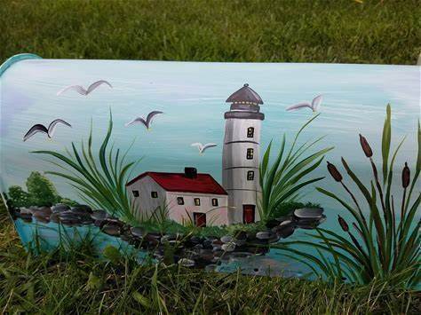 Hand Painted Mailbox Lighthouse By The Shore Decorative Handpainted Mailbox