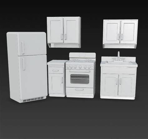 Dollhouse Kitchen Set STL 1:12 Scale Miniature Kitchen Cabinets Modular Furniture