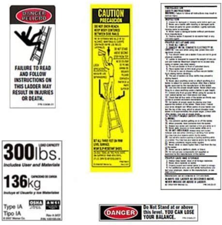 Werner Ladder Labels: 14 Labels, Instruction Labels/Safety And Hazard Labels Model: LAS100