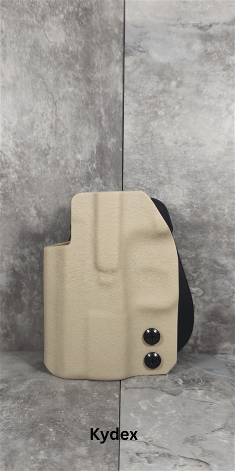 S&W M&P 9 Shield Plus Carry Comp OWB Paddle Holster. Tomlin Holsters. Desert Tan Kydex. Holsters.