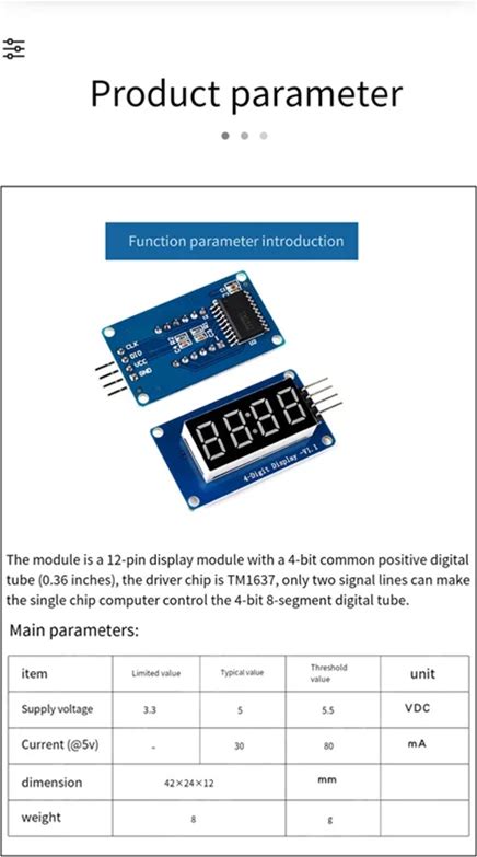 4 Digit 7 Segment Digital Tube TM1637 Drive Chip Decimal Display Board LED Clock Bar Arra Digital Optoelectronic Module For 2-Pin Digital I/O