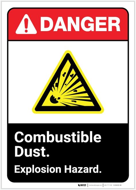 Danger: Combustible Dust Explosion Hazard ANSI Portrait - Label
