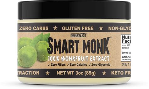 Smart Monk - 100% Monkfruit Extract, Non-Glycemic, Zero Calorie, Sugar-Free Monk Fruit Sweetener (3Oz / 85G)