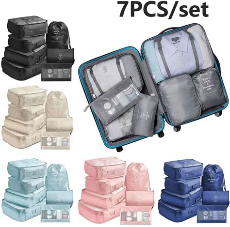 Light 7 Piece Travel Packing Cubes Set Organizer And Compression Bags