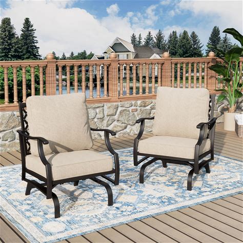 MIXPATIO Patio Chairs Set Of 2, High Back Outdoor Patio Metal Chairs With 5.75" Thick Cushions For Bistro Balcony Porch Deck And Yard, Beige