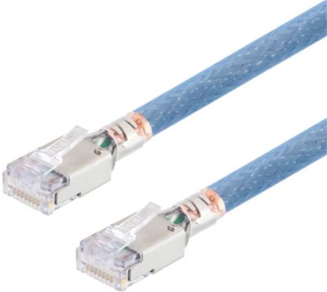Cat 8 40Gig Ethernet Cable, S/FTP 28AWG, Slim Cable With Short Body Connector, PVC Jacket, Blue, 1ft