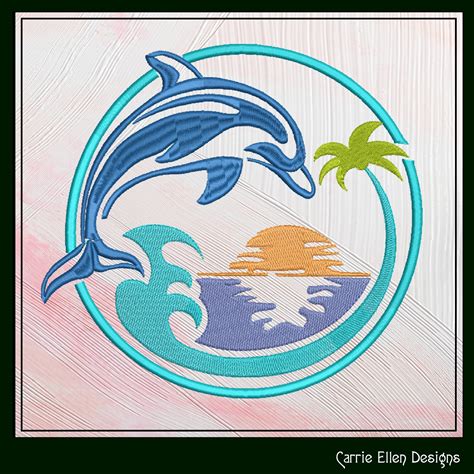 Dolphin Embroidery Design, Machine Embroidery Sea Ocean File, Dolphin Jumping Above Ocean Embroidery