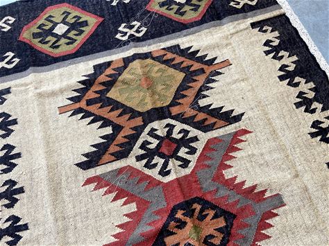 Handmade Southwestern Wool Jute Rug | Native Navajo Kilim