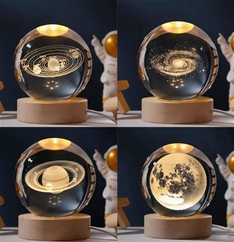 1Pc 3D Galaxy Crystal Ball Night Light, With Warm LED Light Base Can Decorate Science Astronomy