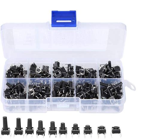 200 Pcs Tactile Push Button Switch Kit Industrial Momentary Tact Switch Assortment 10 W Flick Interrupter Electronic Acc