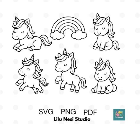 Vector Line Drawing Of Cute Unicorn - Minimalist Unicorn Doodles- SVG PNG PDF - Rainbow Unicorn Line Art, Coloring Pages